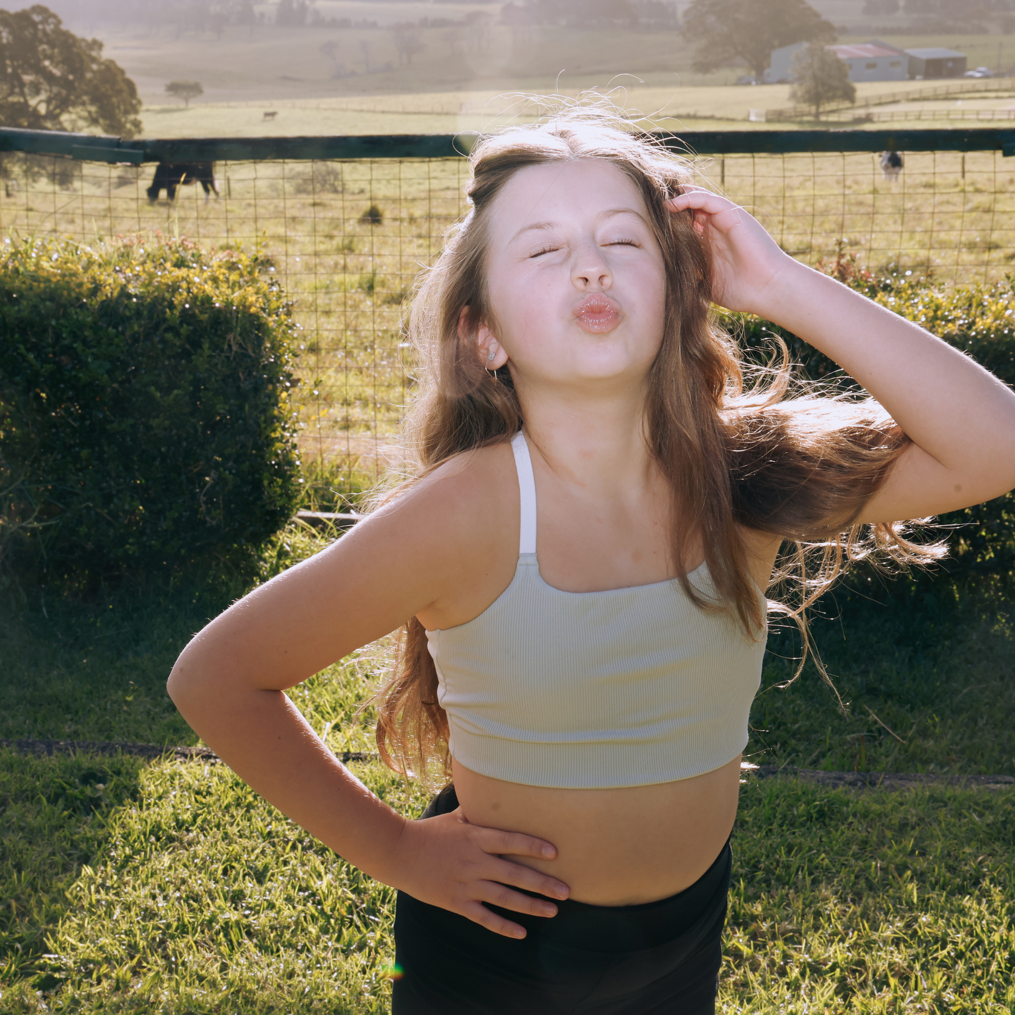 Meet the Billie Green Active Bra for tweens and teens - crafted from ultra-soft, breathable Lenzing™ TENCEL™ Lyocell rib fabric that feels as good as it performs.